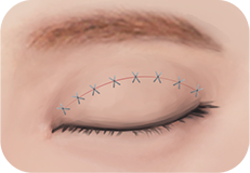 掌握双眼皮下垂的情况以及老化的状态,根据结果来制定手术切除皮肤的量,进行新的双眼皮线设计缝合