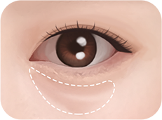 眼下脂肪凸出严重并且下垂使得眼下有阴影时
