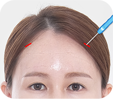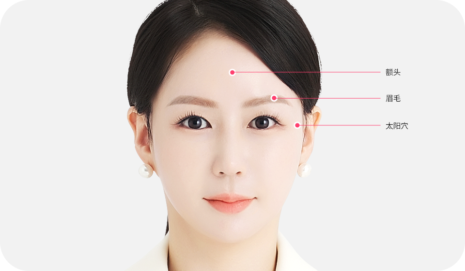 同时提拉至眉毛,改善下垂眉毛,打造整体上给人以柔和、清晰印象的童颜面容