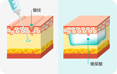 将在体内吸收的透明质酸成分注入在法令纹,脸颊,额头等凹陷的部分